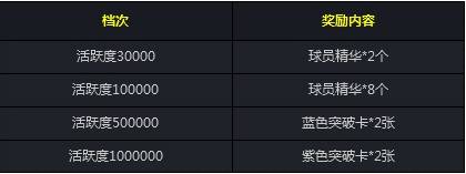 当玩家活跃度累积达到70点,即可获赠普通突破卡(数量随机)。