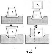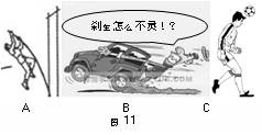 B.闸室与上游水道构成连通器,FB左 C.闸室与下游水道构成连通器,FA左 D.闸室与下游水道构成连通器,FA左=FA右 3、2010年温哥华冬奥会中,我国速滑选手王濛打破世界纪录,一人包揽3枚金牌,下列说法不正确的是 A.站在领奖台上,受到的重力与支持力是一对平衡力 B.站在领奖台上,受到的支持力与对讲台的压力是一对平衡力 C.冲过终点后,由于惯性继续滑行 D.用力向后蹬冰面,因为力的相互作用而向前滑行 A.浴室鞋垫做得凹凸不平 B.滑轮鞋有滑轮 C.防滑地板表面做得很粗糙 D.旅游鞋有凹凸的花纹 5、质量较大的鸽子与质量较小的燕子在空中飞行。如果他们动能相等,那么 A.两者速度无法比较 B.鸽子比燕子飞得快 C.鸽子和燕子一样快 D.燕子比鸽子飞得快 6.图3所示的实例是为了增大压强的是 图3 A.坦克有宽大的履带 B.书包背带做得很宽 C.斧刃做得很锋利 D.铁轨下面铺枕木 7.一个尚未装满橙汁的封闭杯子,先正立放在桌面上,然后反过来倒立在桌面上(图4),两次放置橙汁对杯底产生了压强pA、pB,则 A.pA=pB B.pA>pB C.pA 8.排球上升到一定距离就会落回地面,不计空气阻力。那么下列说法有误的是 A.排球在上升的过程中,排球受到力的方向是竖直向下 B.排球在下落的过程中,排球的重力势能变小 C.排球在上升的过程中,是人在对排球做功 D.排球在下落的过程中,排球所受重力做功越来越大 9.如图5所示,当一块砖平放、立放、侧放时,它对地面压强 平放 立放 侧放 图5 A.平放时最大 B.立放时最大 C.侧放时最大 D.三者都一样大 10、在图6中,利用托里拆利实验装置测量大气压时,当玻璃管内的水银柱稳定后,在玻璃管的顶部穿一小孔,那么管内水银柱将 图6 A.保持不变 B.逐渐下降,最终与管外液面持平 C.仅稍微下降 D.逐渐上升,最终从小孔中流出 11.图7中的器件是省力杠杆的是 A.坩埚钳 B.剪刀 C.筷子D.镊子 图7 12、生活处处有学问,结合图8,说说下列采用的原理中,说法错误的是 A.卖萌松鼠用吸管吸饮料 B.垂线检查砖头是否铺整齐 C.纸飞机离开手后仍会继续飞行D.沿纸条吹气,纸条会 向上飘起 图8注:图中的字母与选项相对应 A.液压技术 B.重力的方向始终竖直向下 C.惯性 D.伯努利原理 13、如图9所示,一个物体用弹簧测力器勾住并慢慢放入水中,直至物体与容器中的水面相平。已知ρ物=ρ水,则弹簧测力器的读数 A.始终保持不变 B.先减小后增大 C.逐渐减小 D. 逐渐增大 图9 14、在一支平底试管内装入适量铁砂,然后先后放入装有甲、乙两种不同液体的烧杯里,如图所示。下列说法正确的是( ) A.试管在甲液体中受到的浮力较大;B.试管在乙液体里排开的液体质量较小 C.试管在甲乙两种液体中受到的浮力相等;;D.在甲液体中试管底部所受液体压力较大 15、在容器中放一个上下底面积均为10cm2,高为5cm,体积80cm3的均匀对称石鼓,将石鼓全部浸没于水,则石鼓受到的浮力是 A.0 B.0.3N C.0.5N D.0.8N 二、填空题(每题2分;共20分) 16、力的三要素: 、 和作用点。 17、图11所示的三个与物理相关的现象中,图 主要表示力能使物体发生形变;图 主要表示物体具有惯性。 18、作用一物体的同一直线上方向相同的两个力的大小分别是8N和12N,则这两个力的合力是 N,若这两个力方向相反,则合力是 N。 19、身边处处有科学,如图12所示,图A的餐具夹是 杠杆;图B的背面有许多小吸盘,这是利用 产生较大的压力使垫紧贴在地面上从而达到防滑的效果。 餐具夹 B 防滑垫反面 图12 20、由于地球的吸引力而使物体受到的力叫 ;牛顿第一定律:一切物体在没有受到力的作用时,总保持 状态或匀速直线运动状态。 21、足球其实包含着许多物理知识——踢足球时脚感到疼,是因为力的作用是 的;球之所以会越滚越慢是因为受到 力的作用。 吹气 22、图13中重均为10N的铁球和正方形木块置于水平桌面上,静止时,木块受到的合力是 N;此时 对桌面压强最大。图13A 23、在水平地面上,工人用100N的水平推力推动重150N的箱子,4s内前进6m,在这个过程中,木箱受重力所做功 J;工人对木箱做功 J,工人的功率为 W。 24、如图14所示对纸片吹气,可观察到两纸片会 。这是因为气体流速越大的地方压强越 。 25、在水平桌面上有一质量为1kg的长方体。用4N的力水平向右拉,长方体静止不动,此时它所受摩擦力 N;若拉力增大至8N,长方体仍静止不动,长方体所受摩擦力是 N。 三、作图题(共5分) 26、按题目要求作图: (1)(1分)如图15所示,排球在空中飞行,画出它所受重力示意图; (2)(2分)在图16画出L1、L2; (3)(2分)在图17画出滑轮组提起重物时的最省力的办法。 四、实验探究题(每题6分,共30分) 27、如图18所示的弹簧测力器量程是 ,分度值是 。物体重 N。 28、在探究“滑动摩擦力与那些因素有关”的实验探究中,同学们提出了如下猜想: A.与物体运动速度有关 B.与物体间接触面积大小有关 C.与物体间接触面积粗糙程度有关 D与压力的大小有关 (1)实验中要用弹簧测力计水平匀速拉动木块,是因为 知识可知,此时木块所受的滑动摩擦力等于弹簧测力计的读数。 (2)表1是小李同学设计并记录的实验数据表格,这可验证猜想( )是(字母序号)是 (正确/错误)的。 (3)若要验证猜想B,实验的步骤是: a. ; ; b. 29、图19是探究“二力平衡的条件”的实验,据此回答以下问题: (1)小车所受到了两个拉力F1和F2;实验中,小车应处于 状态。 (2)实验中应调整 来改变F1和F2的大小。 30、小明在探究“影响压力作用